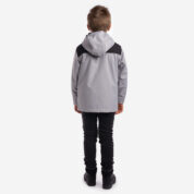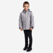 Bērnu ūdens- un vēja izturīga pavasara-rudens jaka. Elpojošs virsaudums. Kapuces malā iestrādāta gumijas lente. Noņemamā kapuce pie apkakles nostiprināma ar spiedpogām. Regulējami piedurkņu gali. Rāvējslēdzēja stiprinājums. Priekšpusē iestrādātas kabatas. Apakšmalā gumijas auklas tunelis ar iestrādātām atdurēm. Virsaudumam atstarojošas detaļas.