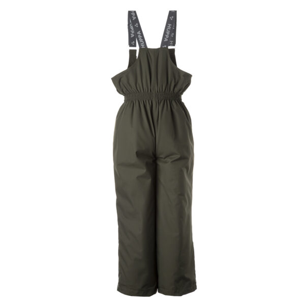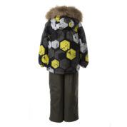 Bērnu jakas un bikšu komplekts. Ūdens un vēja necaurlaidīgs, gaisu caurlaidīgs virsējais audums. Jakai un biksēm ir mīksta odere. Piedurkņu un muguras daļā iestrādāta gumijas apdare. Noņemamā kapuce pie apkakles stiprināma ar velkro aizdari. Kapucei mākslīgās kažokādas malai. Biksēm ir augstais viduklis un regulējamas elastīgās lences. Jostas daļā iestrādāts gumijas paliktnis. Staras aizdarāmas ar stoperi. Ūdens necaurlaidīgi līmēti izšuvumi. Biksēm trūkst iekšējais staru apšuvums. Kā jakai, tā arī biksēm ir atstarojošas detaļas.