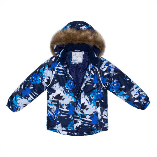 Bērnu jakas un bikšu komplekts. Ūdens un vēja necaurlaidīgs, gaisu caurlaidīgs virsējais audums. Jakai un biksēm ir mīksta odere. Piedurkņu un muguras daļā iestrādāta gumijas apdare. Noņemamā kapuce pie apkakles stiprināma ar velkro aizdari. Kapucei mākslīgās kažokādas malai. Biksēm ir augstais viduklis un regulējamas elastīgās lences. Jostas daļā iestrādāts gumijas paliktnis. Staras aizdarāmas ar stoperi. Ūdens necaurlaidīgi līmēti izšuvumi. Biksēm trūkst iekšējais staru apšuvums. Kā jakai, tā arī biksēm ir atstarojošas detaļas.