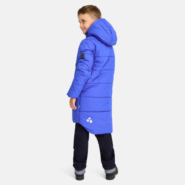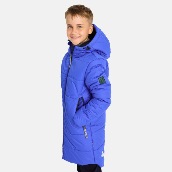 Ūdens un vēja noturīgs mētelis bērniem ar 300 g siltinājumu. Elpojošs virsaudums. Regulējama kapuce. Piedurkņu galos aproce ar valnīti. Priekšējā aizdarē divvirzienu rāvējslēdzējs. Kabatas ar rāvējslēdzēju. Uz virsauduma atstarojošas detaļas.
