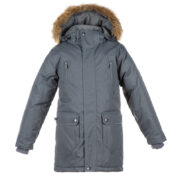 Boys´ parka with 300 g insulation. The outer fabric is wind- and waterproof. Taped seams, ribbed inner cuffs in the sleeves and an adjustable waist and hem keep you warm and dry. Reflective details on the outer fabric. The removable hood is attached to the collar with snaps and its natural fur trim is also removable. The parka has zippered chest pockets and snap-fastened front pockets.