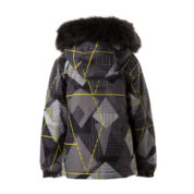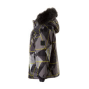 Bērnu ūdens un vēja necaurlaidīga jaka Gaisu caurlaidīgs virsējais audums Mīksts jakas oderes audums Noņemamā kapuce pie apkakles stiprinās ar velkro aizdari Piedurknes apstrādātas ar gumijas apdari Priekšpusē rāvējslēdzēja aizdare Priekšpusē aizdarāmas kabatas Kapucei noņemama mākslīgās kažokādas mala Auduma virspusē atstarojošas detaļas