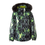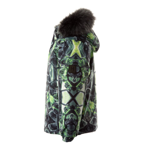 Bērnu ūdens un vēja necaurlaidīga jaka Gaisu caurlaidīgs virsējais audums Mīksts jakas oderes audums Noņemamā kapuce pie apkakles stiprinās ar velkro aizdari Piedurknes apstrādātas ar gumijas apdari Priekšpusē rāvējslēdzēja aizdare Priekšpusē aizdarāmas kabatas Kapucei noņemama mākslīgās kažokādas mala Auduma virspusē atstarojošas detaļas