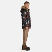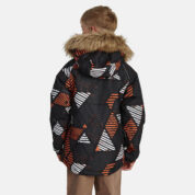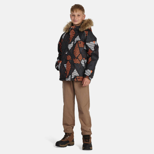 Bērnu ūdens un vēja necaurlaidīga jaka Gaisu caurlaidīgs virsējais audums Mīksta jakas odere Noņemamā kapuce pie apkakles stiprināma ar velkro aizdari Piedurknēs un kapucē iestrādāta gumijas apdare Priekšpusē apšūta rāvējslēdzēja aizdare Priekšpusē kabatas Kapucei mākslīgās kažokādas mala Auduma virspusē atstarojošas detaļas