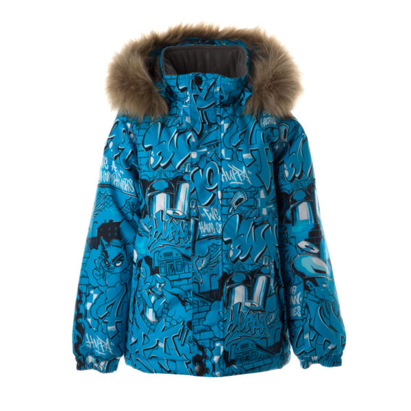 Bērnu ūdens un vēja necaurlaidīga jaka Gaisu caurlaidīgs virsējais audums Mīksta jakas odere Noņemamā kapuce pie apkakles stiprināma ar velkro aizdari Piedurknēs un kapucē iestrādāta gumijas apdare Priekšpusē apšūta rāvējslēdzēja aizdare Priekšpusē kabatas Kapucei mākslīgās kažokādas mala Auduma virspusē atstarojošas detaļas