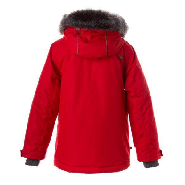 Boys´ winter jacket with 300g insulation. Wind and water resistant fabric with the best technical characteristics. Taped seams, ribbed inner cuffs in the sleeves, adjustable sleeve ends and an adjustable hem keep you warm and dry even when doing winter sports. For the best visibility in the dark, the jacket has been added with reflective details and the front of the chest is decorated with a reflective application. The removable hood is safe – it is fastened with snaps to prevent getting caught and its furry edge is also removable. The jacket has front pockets and a chest and shoulder pocket, all equipped with a zipper.