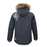 The boys´ waterproof and highly durable HuppaTec jacket with 200 g insulation. All seams of the jacket are taped and its heat-reflecting HuppaTec lining ensures 30% better thermal insulation for the product. Thanks to this lining, thin intermediate layers can be used when dressing, which makes active movement without sweating much more pleasant and the body stays warm and dry even in urgent situations. The comfort of use is increased by elastic cuffs, an easily removable hood with buttons and a genuine fur trim, a snow guard, zipped pockets and a smart card pocket. Reflective details add safety