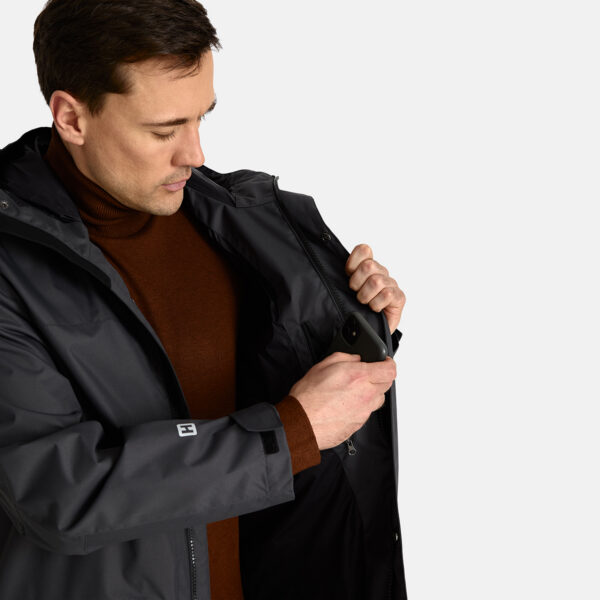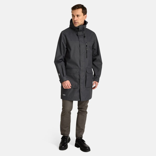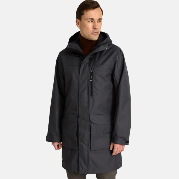 Meeste vee- ja tuulekindel kevad-sügis mantel. Hingav pealiskangas. Mantli sisepool pehmest voodrikangast. Reguleeritav kapuuts ja varrukaotsad. Vettpidavad teibitud õmblused. Pealiskangal helkurdetailid.