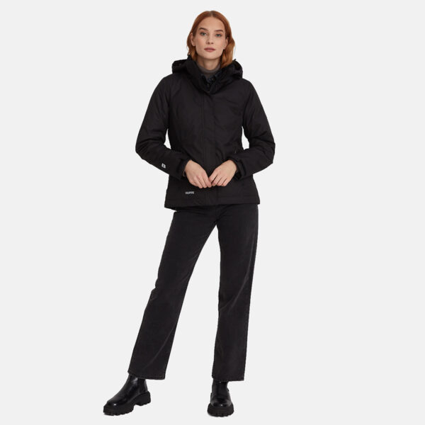 Naiste vee-ja tuulekindel 40g soojustusega kevad-sügis jope. Eemaldatav reguleeritav kapuuts kinnitub kraele lukuga. Allääres sissetöödeldud stopperitega kumminööritunnel. Reguleeritav kapuuts ja varrukaotsad. Tasku esikinnise all. Pealiskangal helkurdetailid.