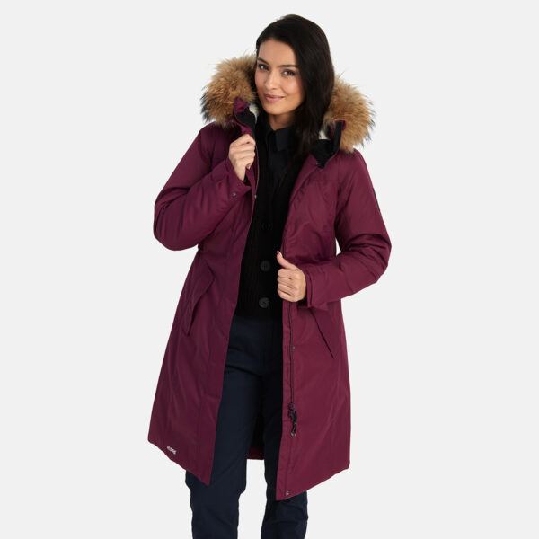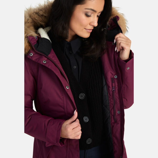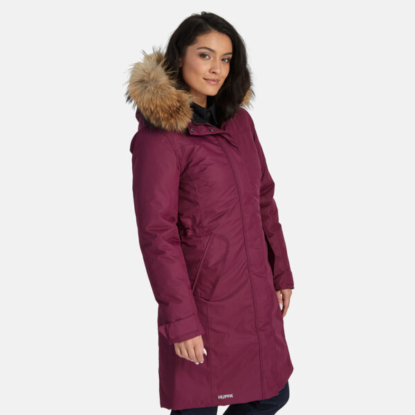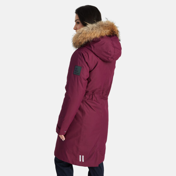 Naiste vee- ja tuulekindel 200 g soojustusega talveparka. Hingav pealiskangas. Parka sisepool pehmest kangast. Selja ülaosas ja kapuutsi siseküljel lambanaha imitatsiooniga vooder. Reguleeritav kapuuts. Varrukaotstes soonikmansett. Varrukaotsad reguleeritavad. Esikinnises trukiliistuga kaetud kahesuunaline tõmblukk. Vööjoonel stopperitega kumminööritunnel. Vettpidavad teibitud õmblused. Kapuutsil eemaldatav naturaalkarva ääris. Pealiskangal helkurdetailid.
