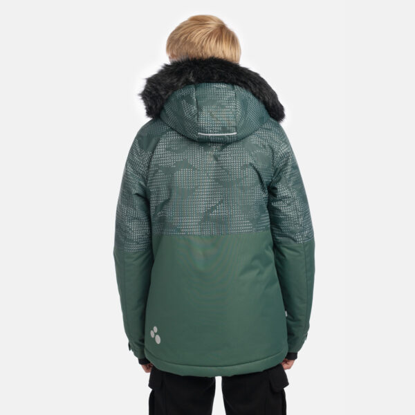 Laste vee- ja tuulekindel 200 g soojustusega jope. Hingav pealiskangas. Jope sisepool pehmest voodrikangast. Eemaldatav kapuuts kinnitub kraele trukkidega. Varrukaotsad reguleeritavad. Esikinnises liistuga kaetud tõmblukk. Esiosas sissetöödeldud lukuga taskud. Vettpidavad teibitud õmblused. Kapuutsil eemaldatav kunstkarusnahast ääris. Pealiskangal helkurdetailid.